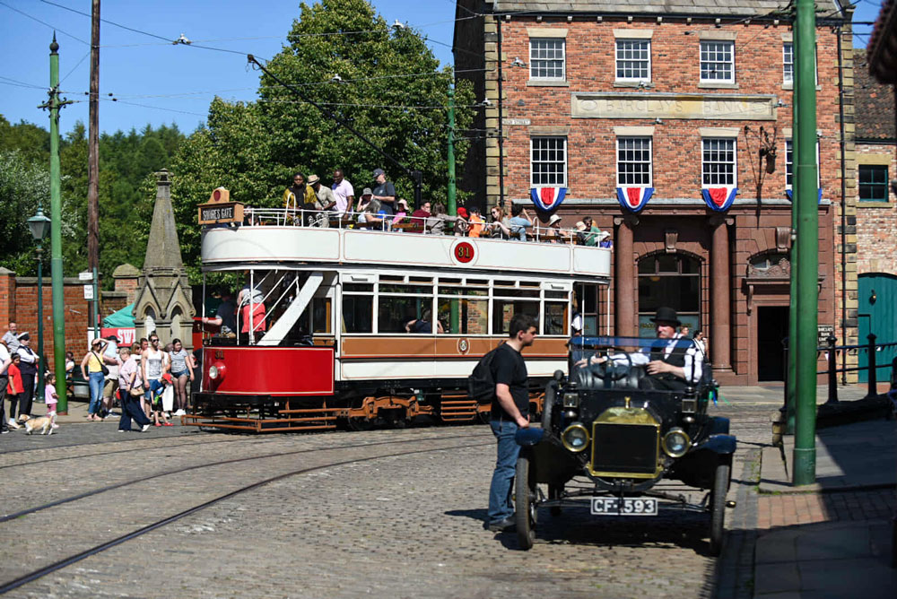 Into the 1900s Town and Blackpool 31 is at the clockwise tramstop. The car on the right is a 1913 Ford Model-T Tourer.