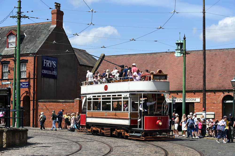 Another view of 31 in what is probably the most common location for photos of trams at the museum. There's a queue of people waiting to board but they will have a fair wait as people gently make their ways down the stairs from the top deck.