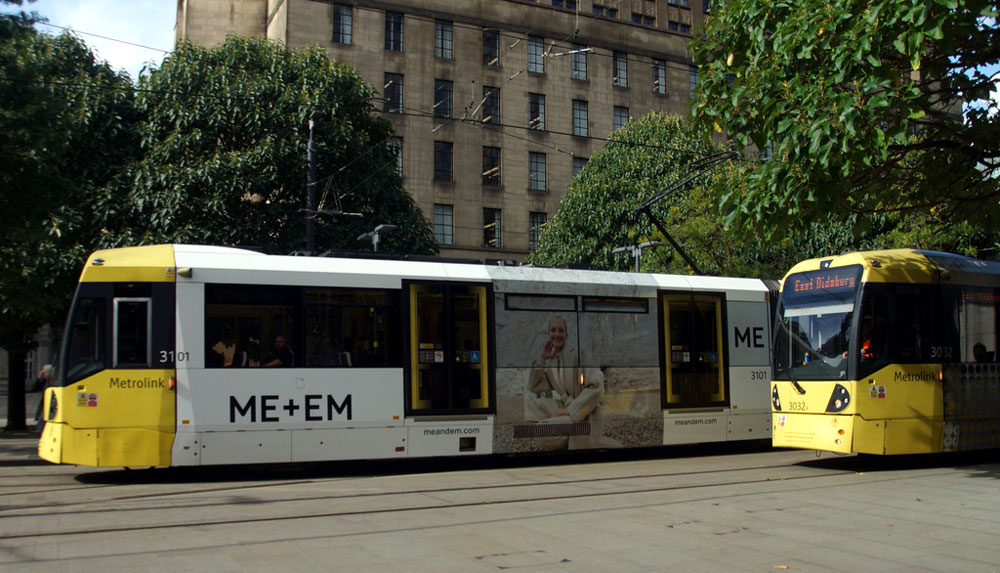 The majority of the trams we see are in the standard silver and yellow Metrolink fleet livery but there are also a couple of the advert liveries seen. |