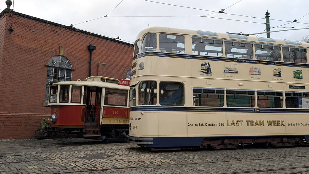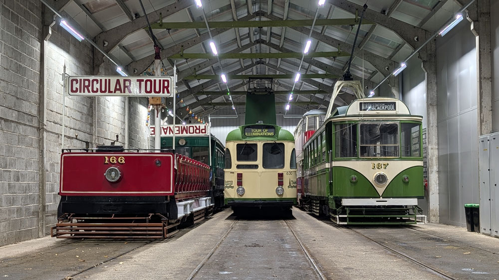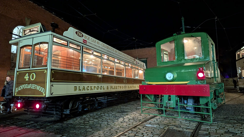 This collection features photos from the first day of the event - Saturday 8th November 2025 - when six trams were used in service. This included Glasgow 22, which had the addition of external illuminations, and Blackpool 236, which has strings of lights from each corner. They were joined by Chesterfield 7, Newcastle 102, London County Council 106 and Leeds 399. We start off before dark with some photos before darkness falls. As well as the trams in service we take a look around the depot yard which had a number of trams on display - including the rare appearance of Prague 180 - and a peek into the Workshop at current progress on major restoration projects. * And if you like your pictures to be moving then head to YouTube for Steven Hughes' video of the event: Steven Hughes Transport Videos. |