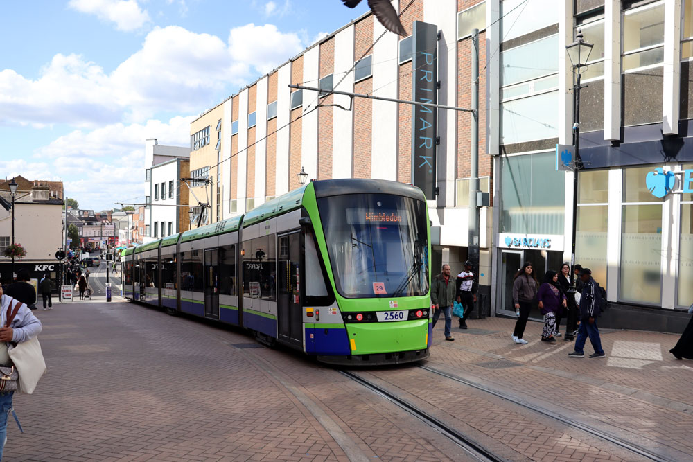 2560 goes away from us on the way to Wimbledon. Its just come off of George Street and is now in Church Street as it runs through central Croydon.