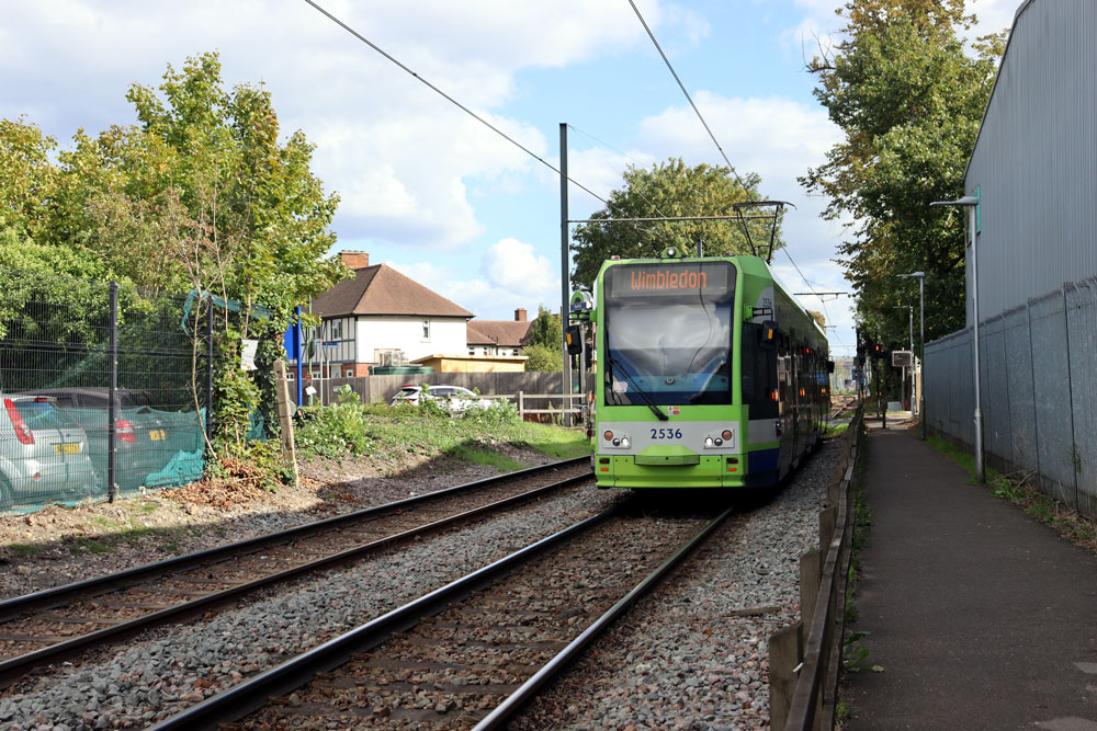 At Beddington Lane (further towards Wimbledon) with an image of 2536 which has just crossed the road of the same name and is now approaching the stop bound for Wimbledon.