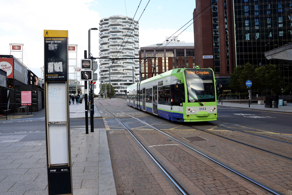 2552 is just crossing over Dingwall Road as its left East Croydon behind and continues its way down George Street with another service to West Croydon. It won't be long before we see the tram back here again as it heads back to New Addington.