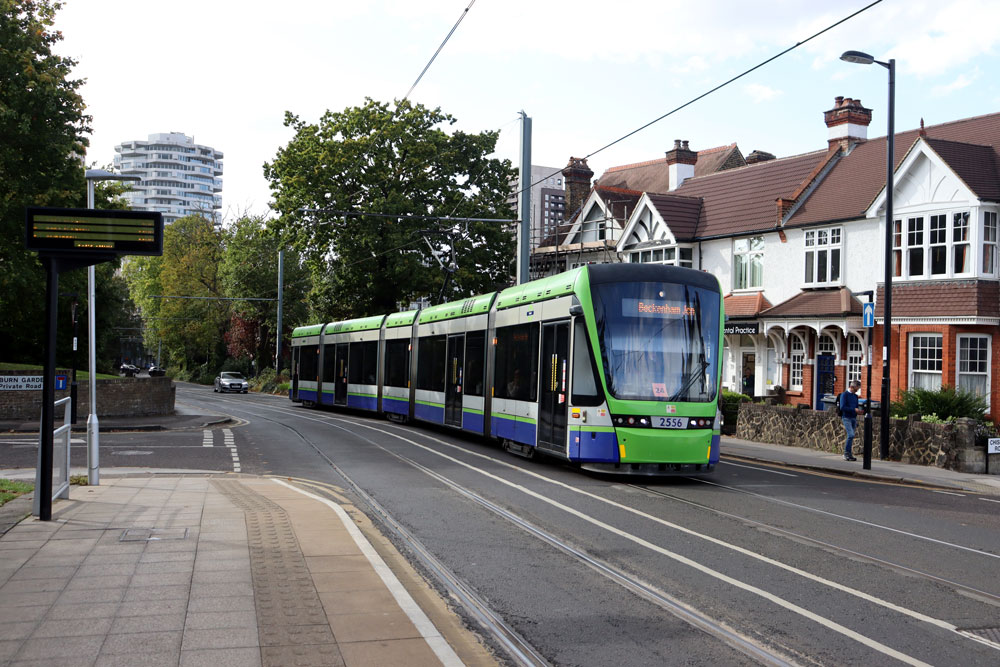 From the other side of the road now as 2556 passes the inbound platform at Lebanon Road on the way to Beckenham Junction.