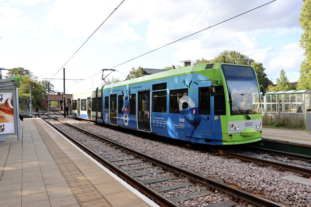 2025 marks 25 years of Transport for London and as part of the celebrations a number of vehicles which operate across the capital have received special vinyls. For the London Trams system that has seen 2537 receive a half wrap detailing some of the achievements since TfL came into being. The tram is just arriving at Mitcham Junction bound for Beckenham Junction.