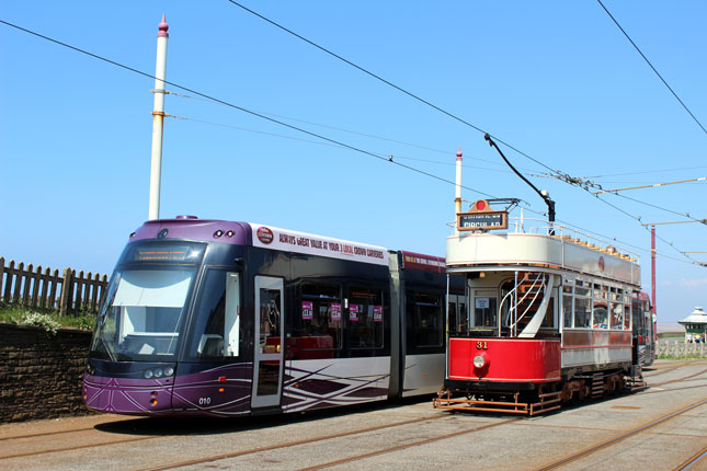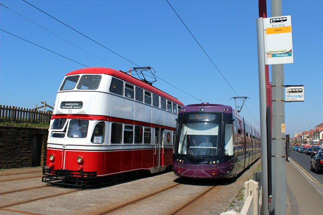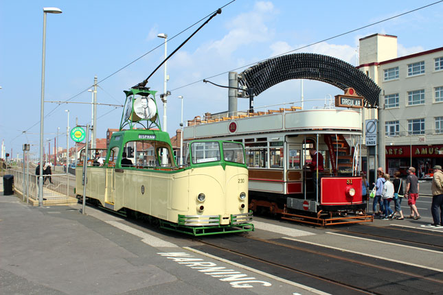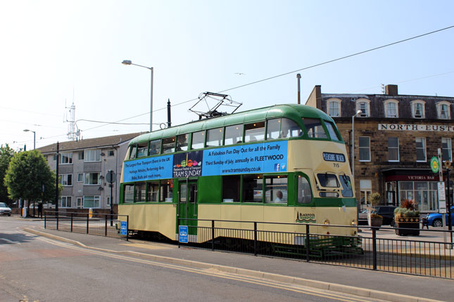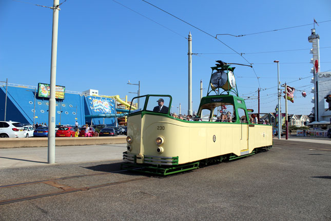 The Spring Bank Holiday weekend between Saturday 28th and Monday 30th May saw another period of intensive heritage tram operation with the popular Gold timetable in use once again. This saw six heritage trams per day in service with all of the trams making one trip to Fleetwood. It was warm and the sun shone which meant the open trams were the stars of the show with Marton Box 31 and Boat 230 in use on all three days joined by Boat 600 (on the Saturday) and Boat 227 (on Sunday and Monday). A further eight heritage trams saw action over the weekend and all are featured in this gallery along with some shots of the Flexity2s in service of the normal timetabled service.