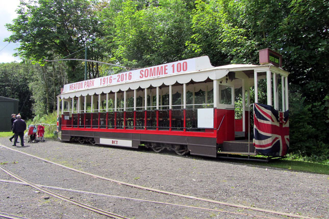 2016 marks the 100th anniversary of the Battle of Somme and the national commemorations for this were centred on Heaton Park in Manchester at the start of July. The Heaton Park Tramway were included in this with many of their trams specially decorated for the event including Manchester 765 and Manchester 173 as recruiting trams with Blackpool 619 carrying side panel events commemorating the anniversary. In this collection we feature those trams the day after the main events.
