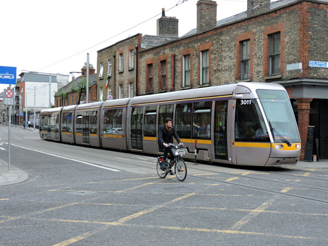 Showing that cyclists and trams can actually co-exist this view shows 3011 about to cross Blackhall Place.