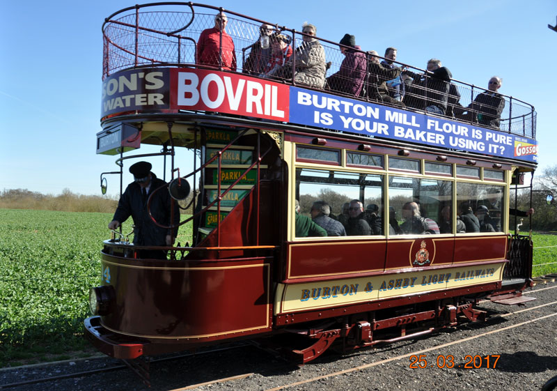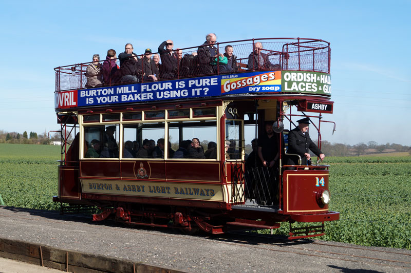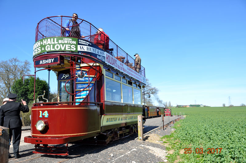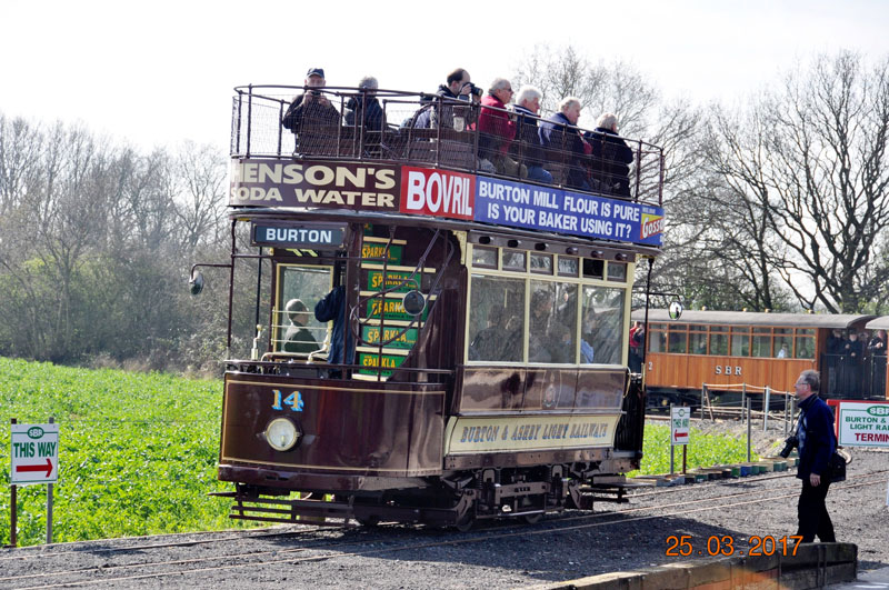 Satursday 25th March 2017 saw one of the more remarkable returns to service in recent years with Burton & Ashby 14 carrying its first passengers in the UK for 90 years. Having only been returned from Detroit in late 2015 the tram had been rapidly returned to operational condition - albeit power by batteries - with this date being the first running day at Statfold Barn since the work was completed. Only 450 tickets were available to travel on the tram during the day and these were rapidly snapped up by eager passengers. In this collection we take a look at 14 on its first day in service. |