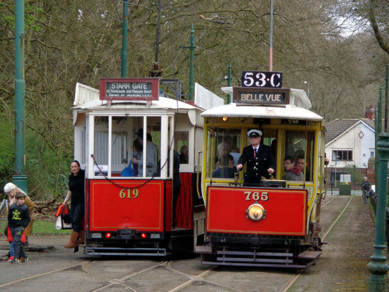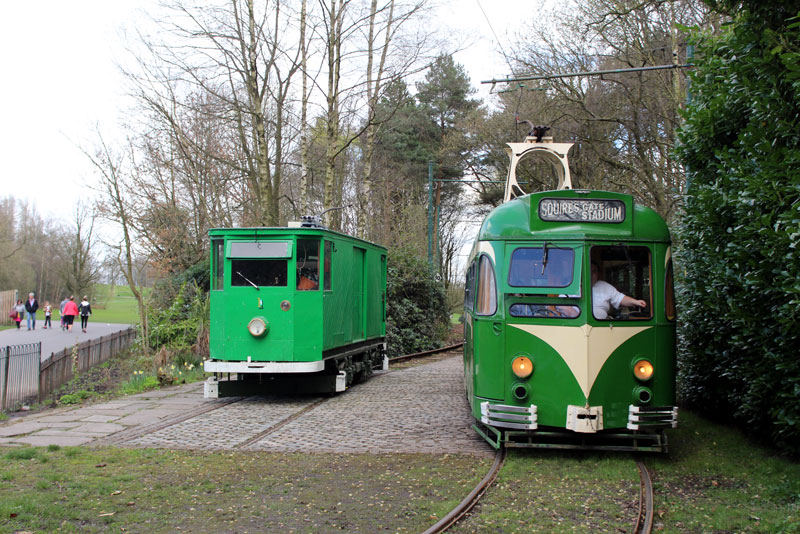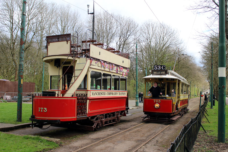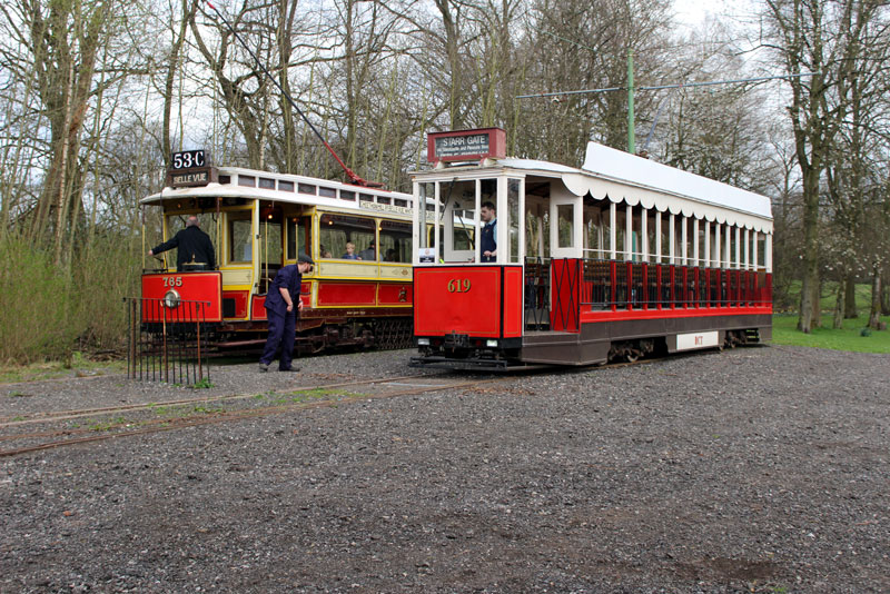 On Sunday 2nd April a special event took place at the Heaton Park Tramway to celebrate the 50th Anniversary of the Manchester Transport Museum Society. The day started with Manchester 765 and Hull 96 in service and then later on in the day Blackpool 619 and Blackpool 623 joined in the fun with up to three of the trams in service at any one time. In addition other stored trams were dragged out of their resting places for display including Blackpool Works 1, Oldham 43, Manchester 173 and Blackpool 702 plus a Manchester Horse Bus sitting on Rawtenstall 23's truck! All of the above feature in this collection.