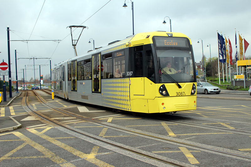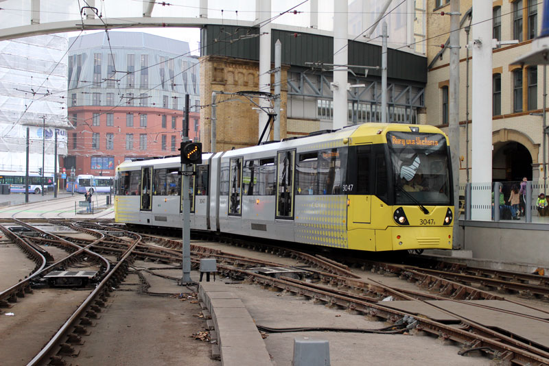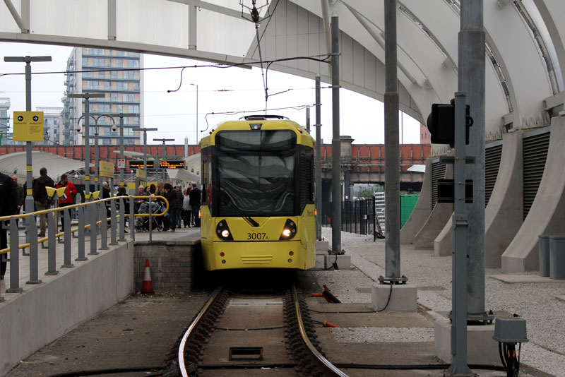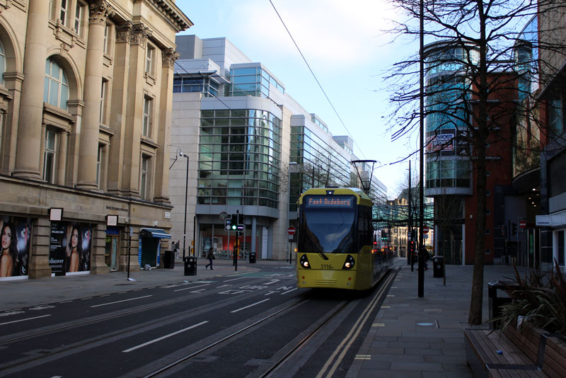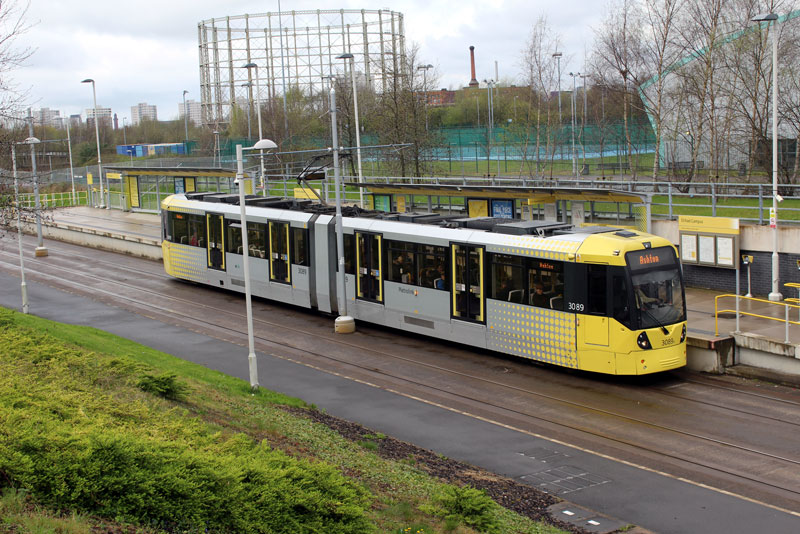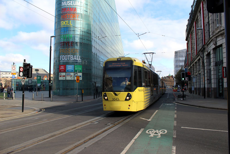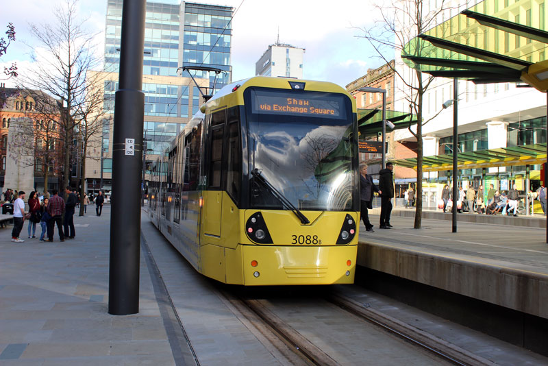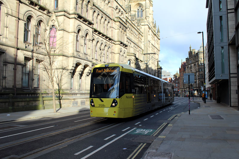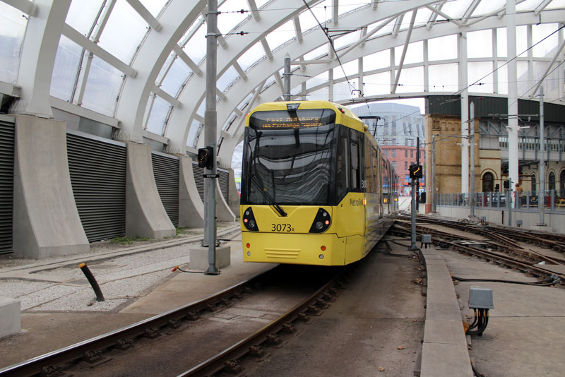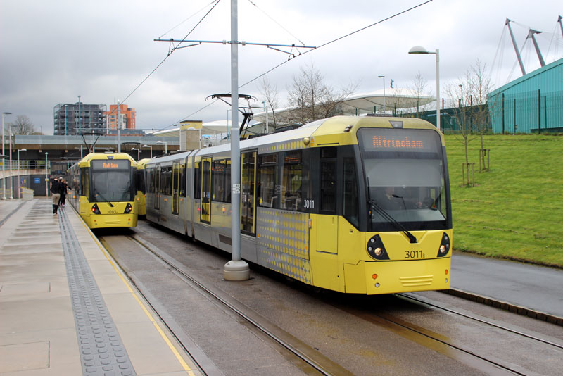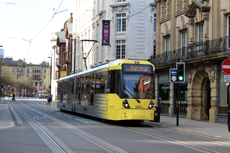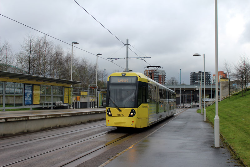 A selection of photos from Manchester Metrolink taken over the first weekend of April. Images come from various locations across the network showing both single and double units in action in the rain, cloud and sun! Sunday 2nd April also saw the first use of the Second City Crossing (2CC) for services other than between the East Didsbury and Oldham/Rochdale lines with Altrincham to Bury direct services diverted to use the newest line because of trackworks in the city centre. |
