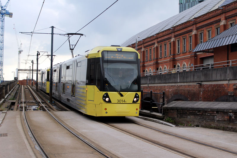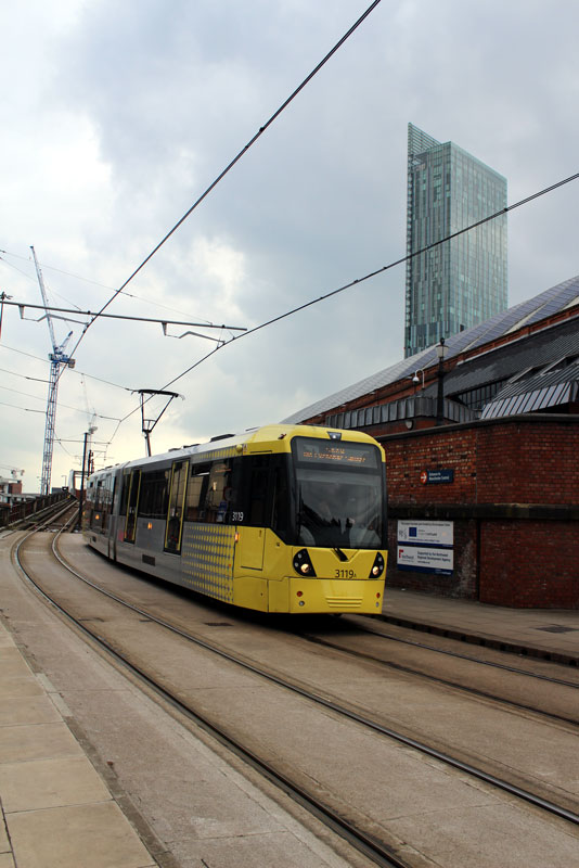 | Having to go to Manchester for work for a few days means we have another selection of photos from the Metrolink network. The majority of the images were taken in the city centre (concentrating on the older lines instead of 2CC) as it was a work trip after all so there wasn't lots of time for exploring further afield but we do also take a trip out to Manchester Airport and MediaCityUK. Included are photos of the M5000s including 3095 in its advert for Key 103. |