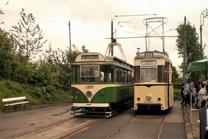 A New Members Day took place at Crich on Saturday 20th May giving recent members of the Tramway Museum Society the chance to see behind the scenes and just what they can do to help at the museum. In addition to the activities for New Members a normal operating day was also ongoing with a three car service utilising Glasgow 22, London County Council 106 and Sheffield 510. In addition to these three trams Berlin 223 006-4 performed its usual access tram duties with Blackpool 167 in use for the new members whilst Oporto 273 was on test following a dewiring incident the previous day. |