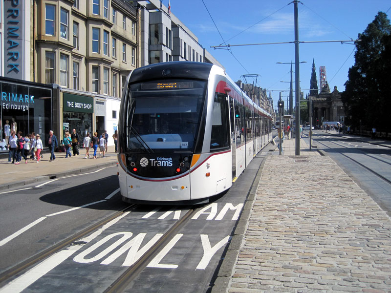 A selection of photos taken on Scotland's only modern tramway - Edinburgh Trams. Taken over several days during July in ever changing weather we take a look at many of the CAF trams which operate the service between York Place in the city centre and Edinburgh Airport including the two trams currently in non-standard liveries - 251 and 261. |