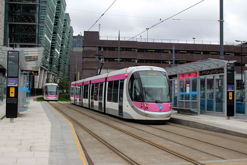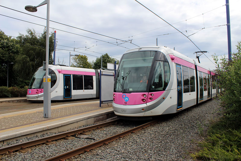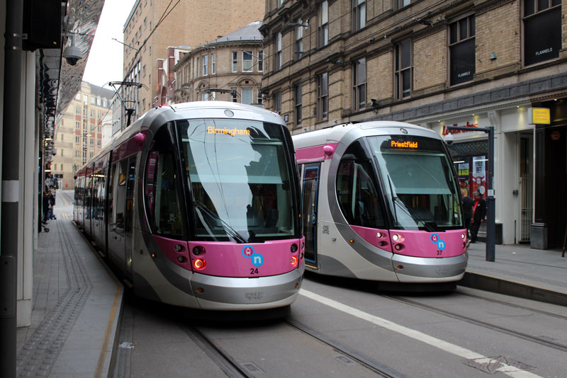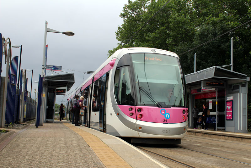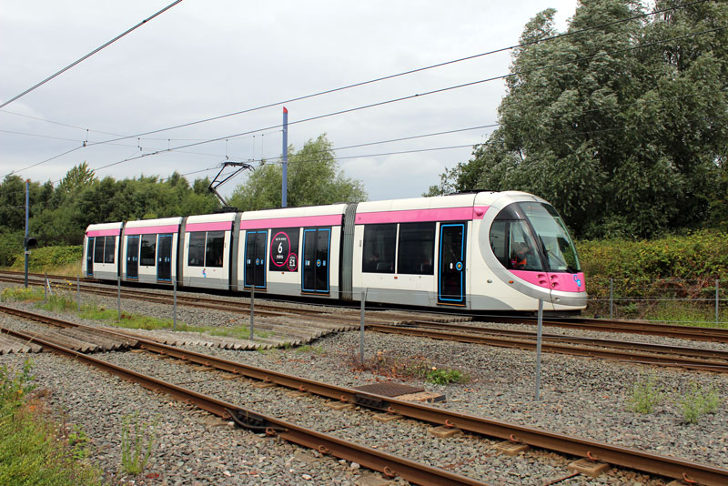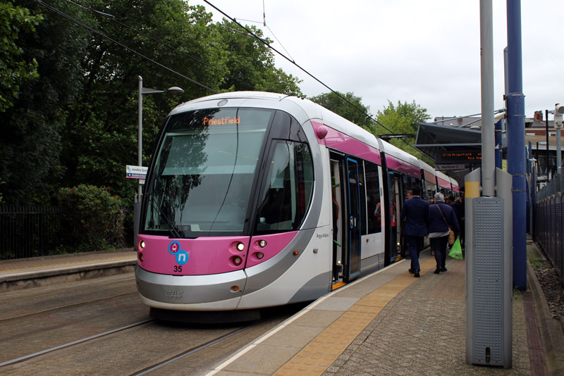 With a 6 month track replacement project ongoing along Bilston Road, Midland Metro services were only running from Grand Central to Priestfield during our visit with the CAF built Urbos 3 trams using the crossover there to return to Birmingham with no wrong line running required. We see some trams running across the crossover here as well as at other locations on the line and also take a very brief look at the rail replacement work just beyond Priestfield. |