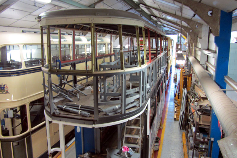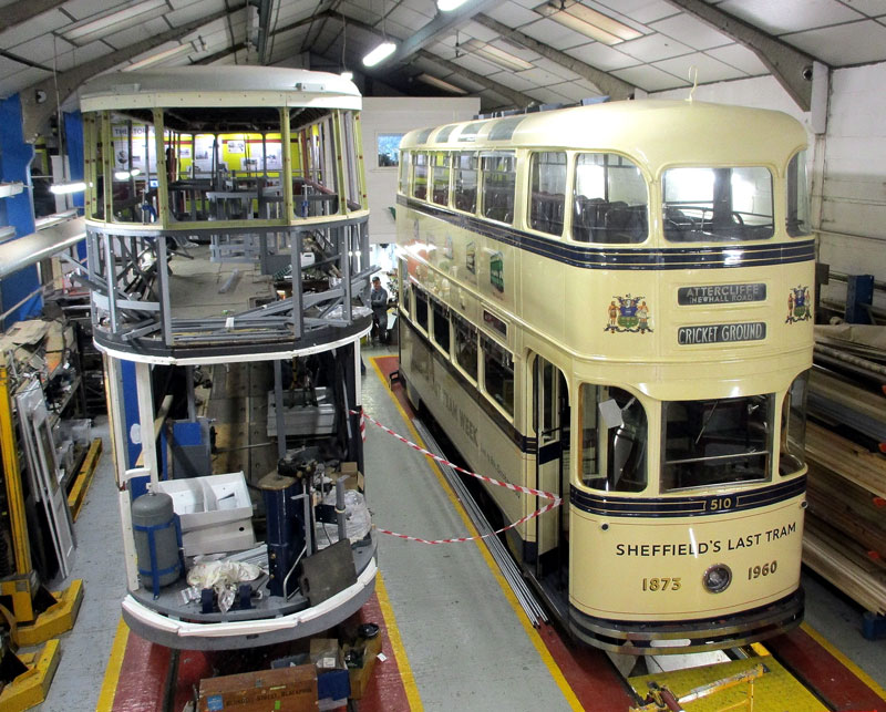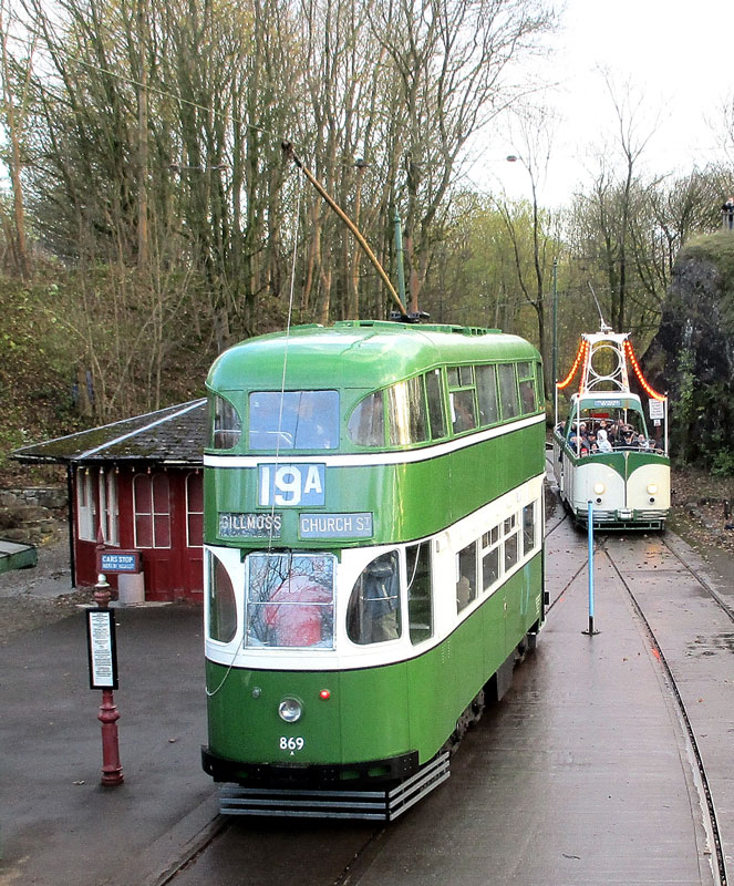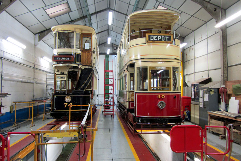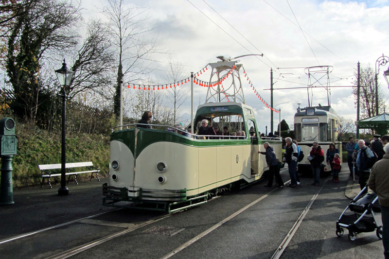 The final weekend of the operating season at Crich had added interest this year as it was planned that, in preparation for the Depot refurbishment over the winter, a "Big Shunt" would take place with many rarely seen trams moved around the depots and Great Exhibition Hall to make room for these works. In this collection we feature many of the trams which were shunted as well as some of the other sights of the weekend which included passengers on board MET 331 as it went for a ride on the Traverser, Douglas Marine Head Drive 1 displayed on the depot fan and a five tram service on both days.