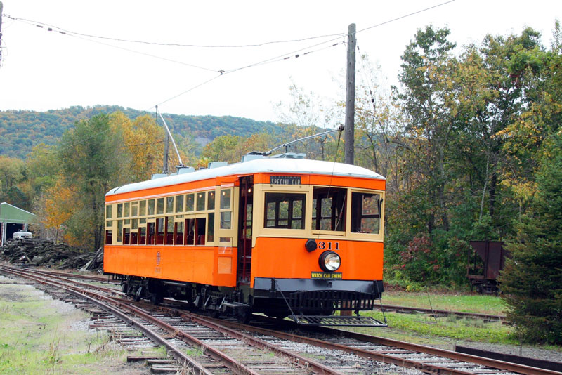 The first in a new irregular series of galleries featuring tramways from around the world we feature images from the Rockhill Trolley Museum (RTM) in Pennsylvania during their annual Fall Festival which took place on 7th and 8th October 2017. During the festival cars basically operate every half hour over the slightly more than a mile long single track along Blacklog Creek to a platform identified as Blacklog Narrows. There is one passing siding at a no longer used picnic ground about halfway along the line, another passing point is at Blacklog Narrows itself where a spur track allows a car to get off of the mainline. During the festival the RTM attempts to have all of its operating cars out and about for at least a few round trips over the line. The RTM is the oldest operating trolley museum in the Commonwealth of Pennsylvania dating from 1960 and the trackage was originally a part of the three foot gauge East Broad Top Railroad and Coal Company's (EBT) Shade Gap branch, this has resulted in much of the operating line at the museum being laid at dual gauge (standard and 3 foot). The RTM shares a portion of its trackage with the EBT which resulted in an unusual signal installation to protect turning excursion trains on the EBT. |
