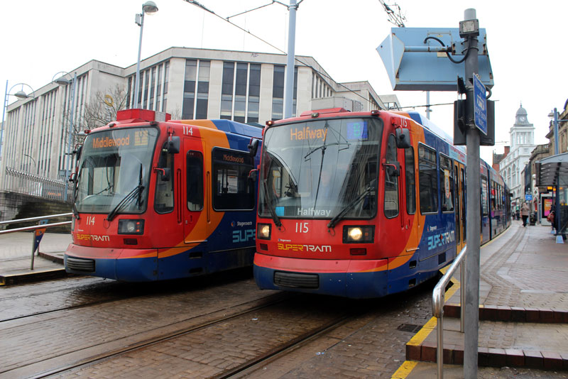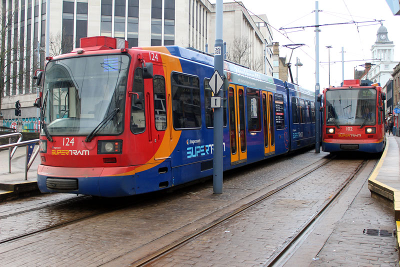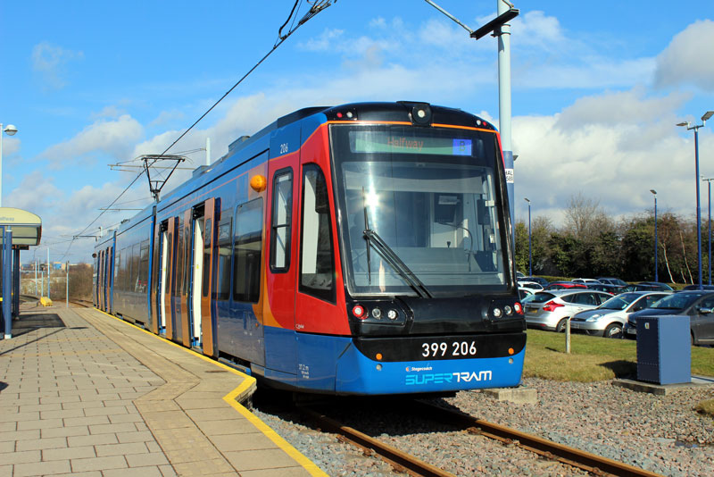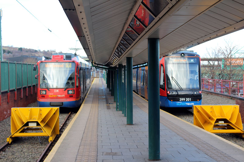 | In this gallery we take a trip to South Yorkshire for a selection of photos on the Stagecoach Supertram network. On the day of our visit three of the Citylink tram-trains were in service on the conventional network with 399 203 in use on the Yellow route, 399 205 on the Purple route with 399 206 on the Blue route. In addition 399 201 was noted out on driver training. We feature all four trams and also take a look at some of the original Siemens-Duewag trams in service. |