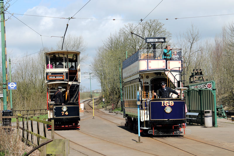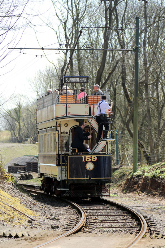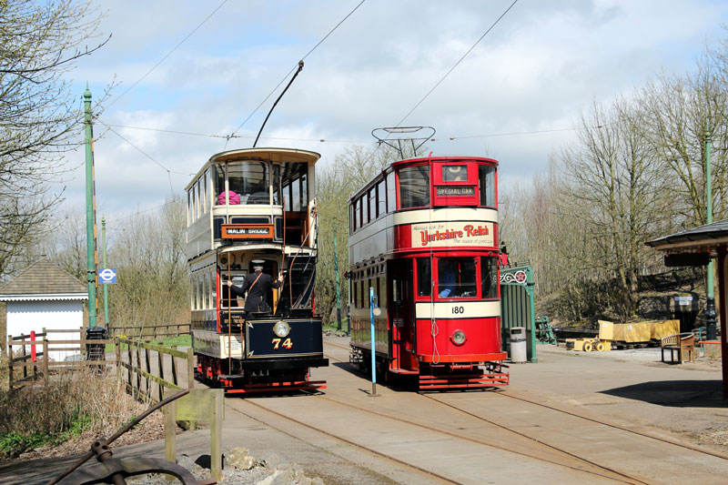 Photos are included here taken on a sunny 18th April 2018 at Crich with a standard midweek three tram service in operation. This saw Sheffield 74, London United Tramways 159 and Blackpool 236 in service whilst Leeds 180 was also out on the mainline under test following recent workshop attention after a fault developed during the 2017 season. In addition to photos of these four trams which also take a look at a few trams in the workshop and depots. |
