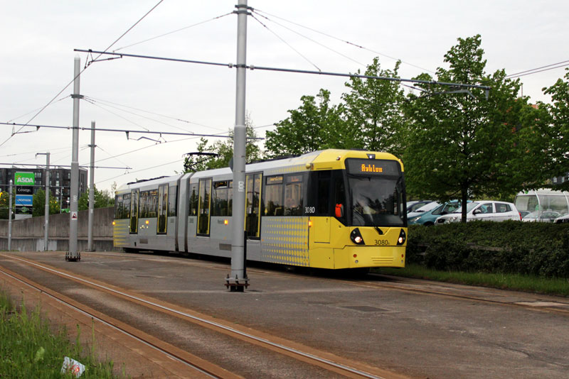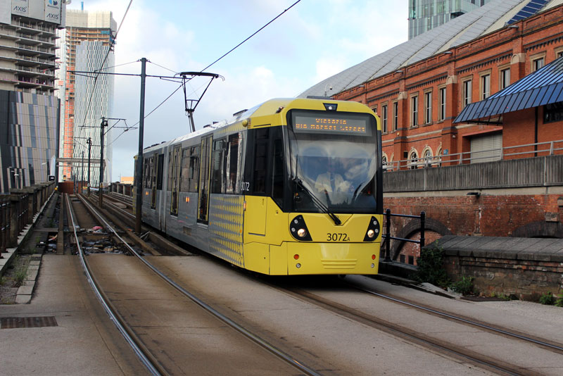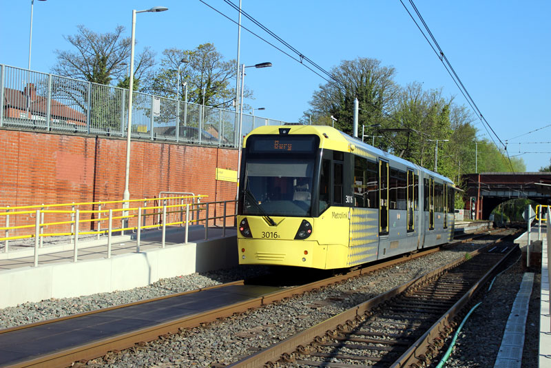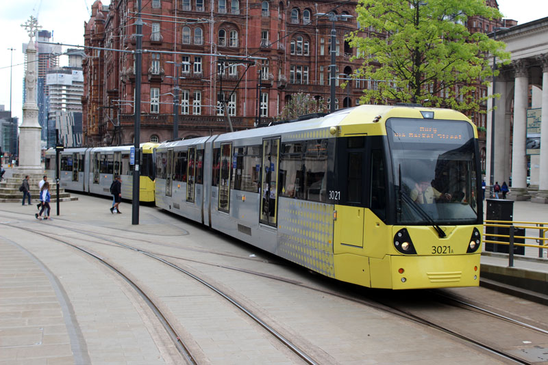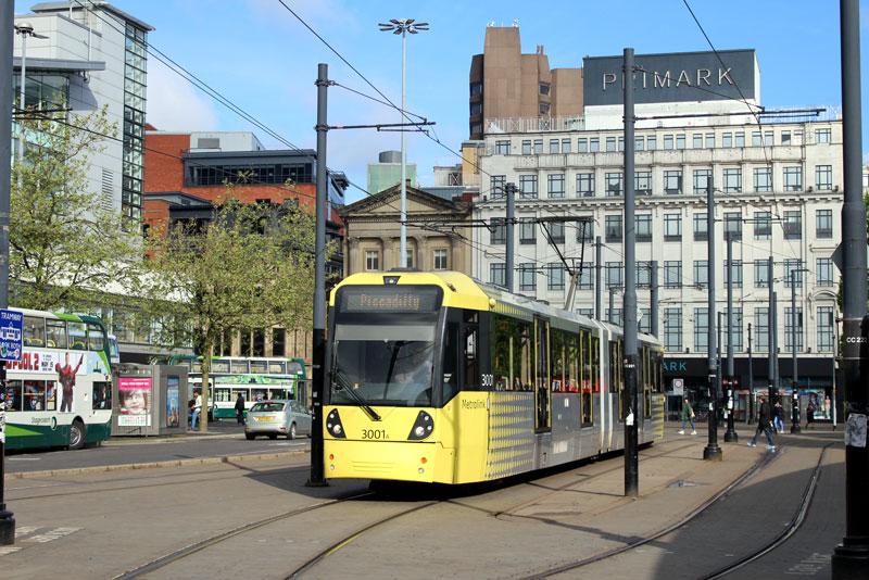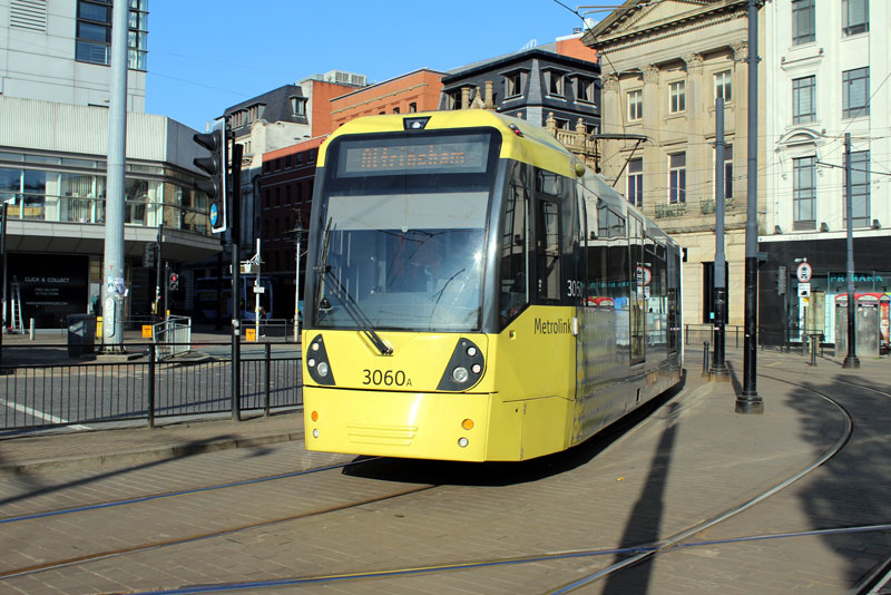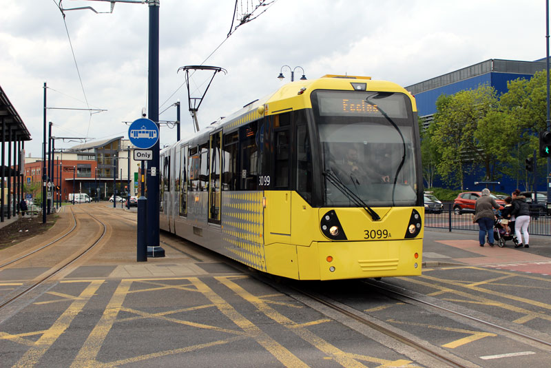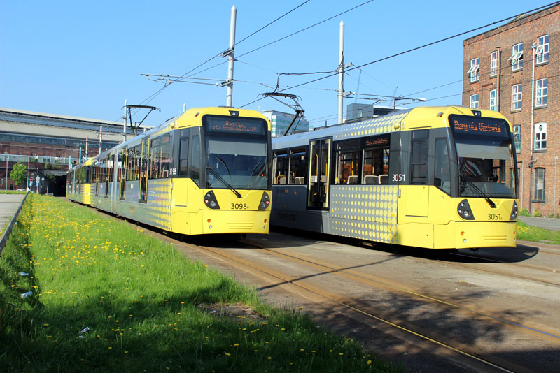 An extensive collection of photos from all corners of the Manchester Metrolink system taken over a nine day period in early May. We start off over the May Day Bank Holiday weekend with warm and sunny weather across the area and continue all the way through to the following weekend. Photos are featured from all lines of Metrolink including many on the city centre lines. We also see all three trams in advert liveries, with 3039 and 3085 carrying idential ads for Just Eat and 3069 for Slater Menswear. |