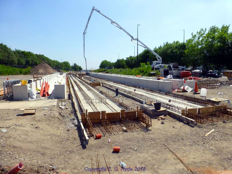 Progress on the construction of the next Manchester Metrolink extension has been making good progress recently and in this collection we take a look at the state of work in early June. Work started on the Trafford Park extension with utility diversions in late 2016 but we have now very much reached the stage where visible signs of the latest Metrolink extension are starting to become apparent. The line will leave the current Eccles line just beyond the stop at Pomona with six new stops planned including a terminus at the Trafford Centre. With the extension also closely serving Manchester United's Old Trafford ground, the Imperial War Museum North and EventCity it looks set to be a very popular line when it opens to the public. It is currently anticipated that services will start in 2020 with a new service running to Crumpsall - to this end work is also underway to construct a new bay platform on the inbound side accessed by outbound trams via a facing crossover. Major work is also planned to connect the new line with the existing at Pomona with a 13 day closure due to start on Saturday 28th July. |