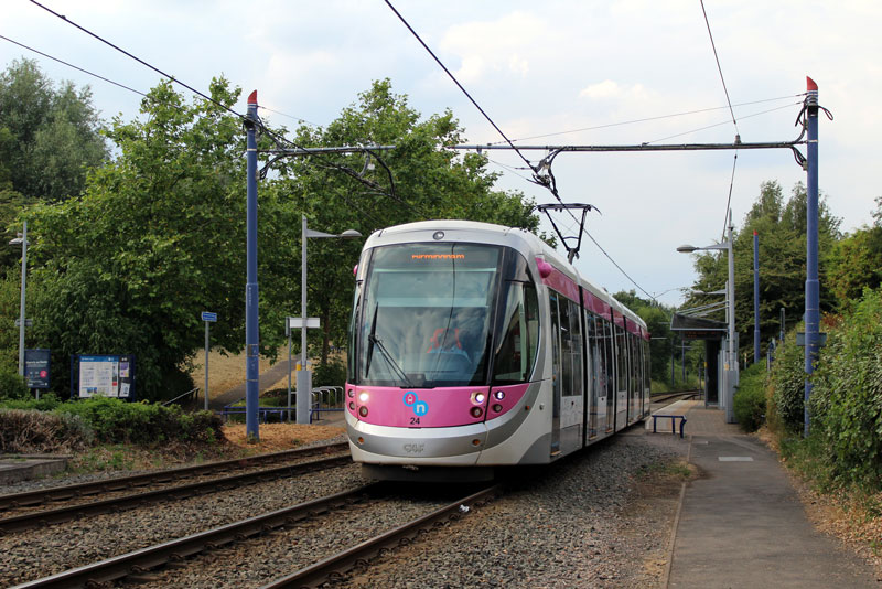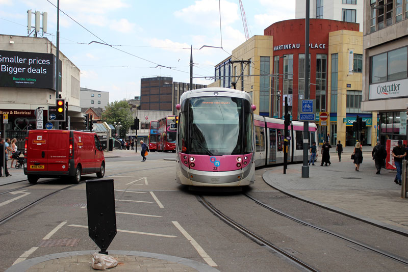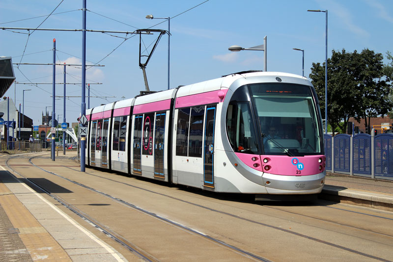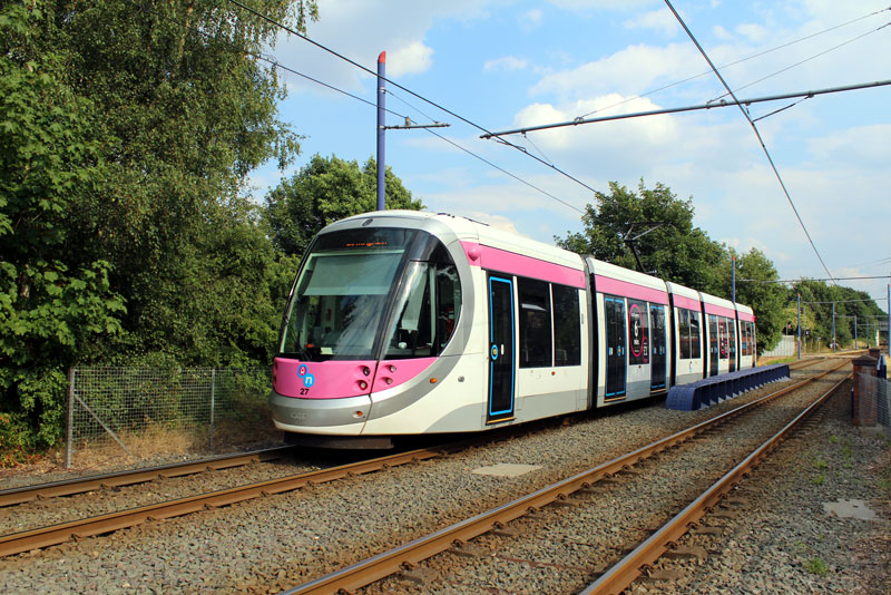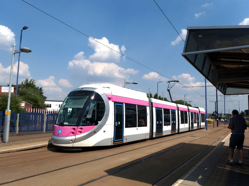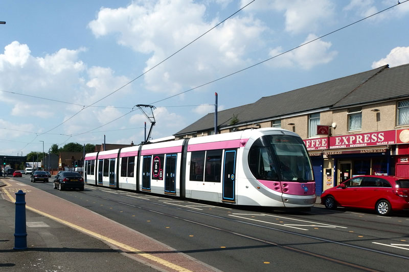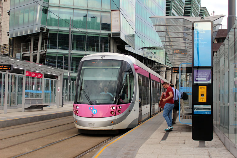 A selection of photos taken on West Midlands Metro showing the fleet of Urbos3 trams in action. These images show battery fitted 31 in the short period of time that it ran with batteries but in the old Network West Midlands livery alongside other non-battery fitted trams. This was shortly after one of the overhead problems which had caused service disruption (and before another!) but there was still a tram shortage leading to a lower service frequency than timetabled. |