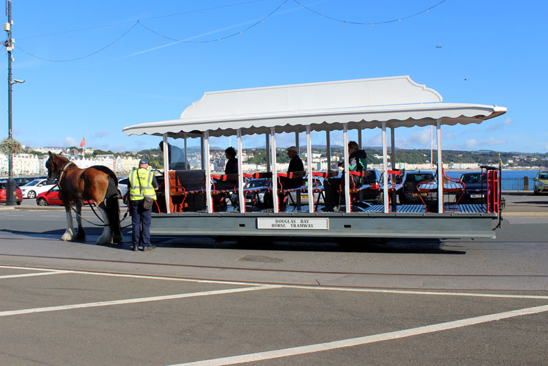Up at the Sea Terminal on the Horse Tramway and Bobby waits the go-ahead to depart with a service for Derby Castle. The tram is 45.