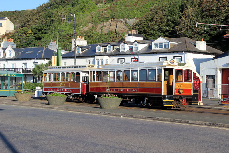 A view of 20+57 waiting at Derby Castle ahead of depature with the 0840 to Ramsey.