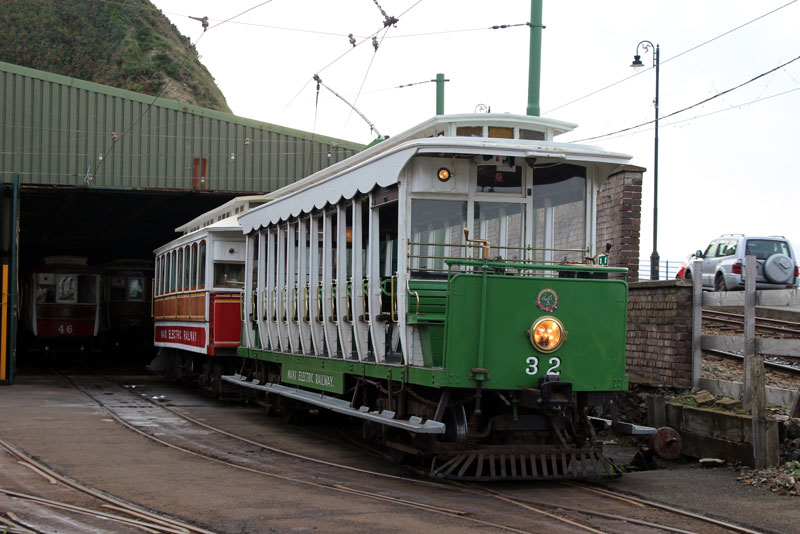 Back at Derby Castle and outside the sheds preparations are made for the rest of the day's service. In this view we see 32+57 with trailer 46 also clearly visible in the shed behind.