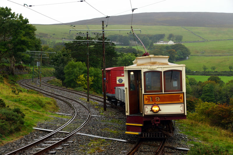 With the order of the goods vehicles now reversed we see 19 leading Wagon 10 and Mail Van 4 back south on the return trip of the Goods Tram Photography Tour.