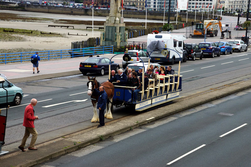 On the return the seven trams were repositioned opposite the Villa Marina, also allowing extra photo opportunities. With Director of Public Transport Ian Longworth driving 12 ic captured here with William once again in charge.