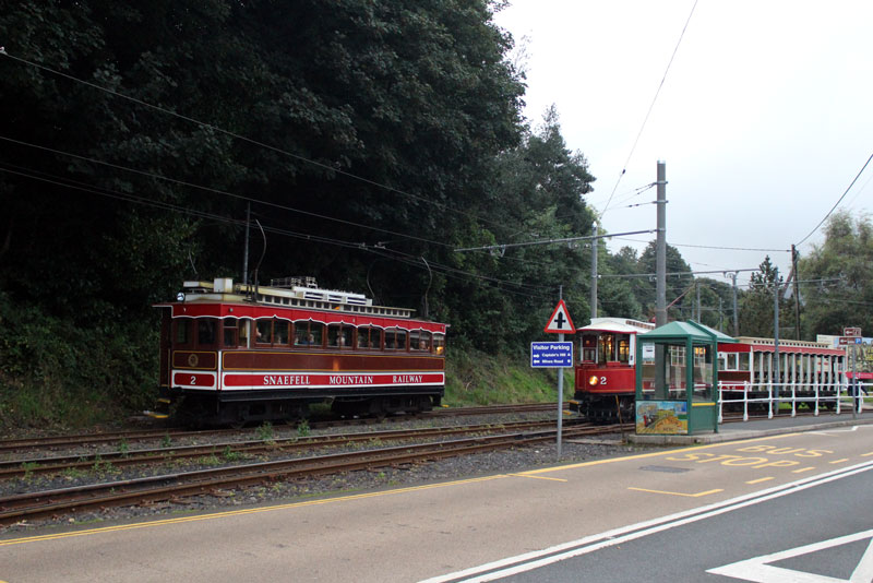 A tale of two 2s with the Snaefell variety continuing on its way to the summit with the MER's 2 approaching its trailer ready to return to Laxey Station and then Derby Castle.