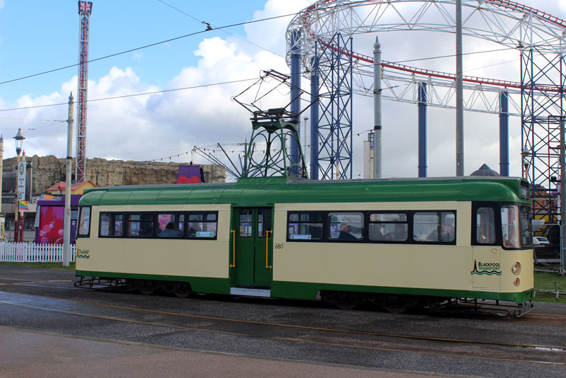 The second tram was due to be Centenary 642 but this was eventually substituted by Railcoach 680 although a couple of journeys were missed. 680 is on Pleasure Beach loop in this view.
