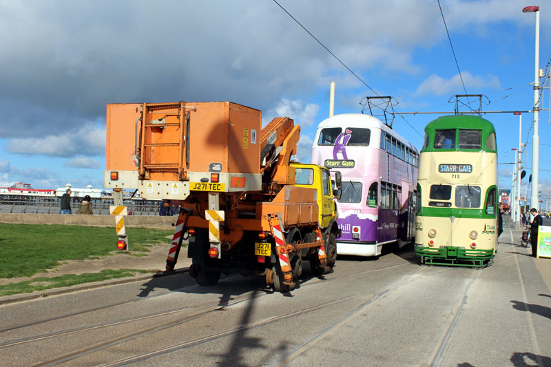 Balloon 713 was due to run on the depot shuttle service but suffered a fault early doors and had to be rescued by Unimog 939. Balloon 715 is seen alongside for Starr Gate.