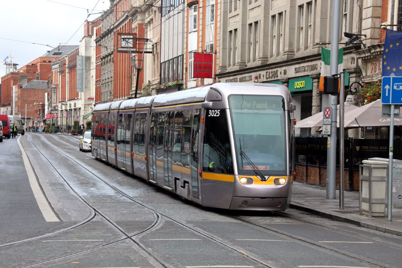 3025 runs along Abbey Street towards the junction with O’Connell Street working a service bound for The Point.