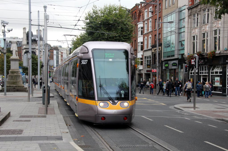 5027 running along O’Connell Street is about to stop at the O’Connell Street GPO stop with a service bound for Broombridge. This is one of the new Alstom Citadis trams of 55m length which only entered service earlier this year.