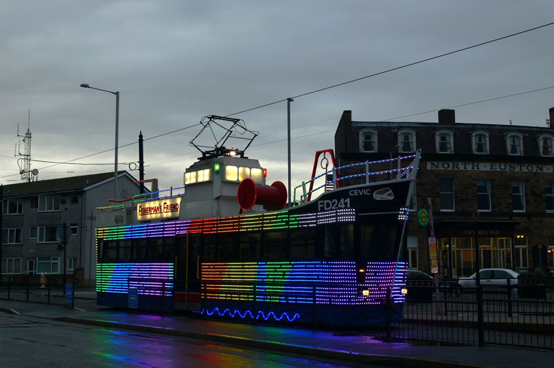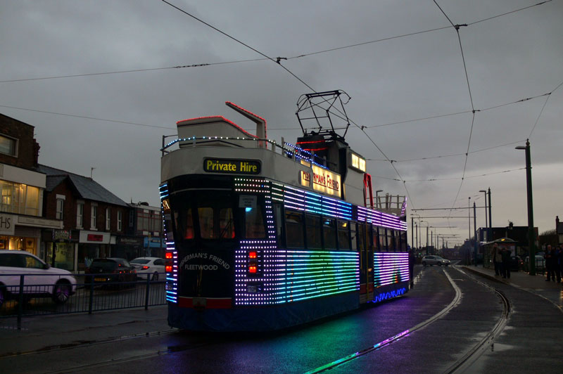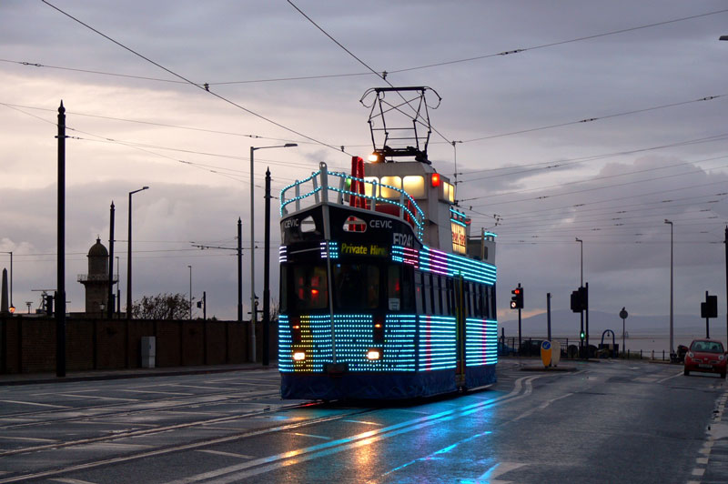 | As part of our sponsorship deal supporting the loan of Birkenhead 20 to Blackpool, British Trams Online ran a special tour on Wednesday 7th November 2018. As 20 was only allowed to operate between Pleasure Beach and Bispham, we ran a couple of journeys with this visiting tram - its last outing before returning home to Birkenhead - before swapping to the illuminated Trawler 737 for a rare full system tour. Despite being organised at short notice for a weekday outside the main season, the tour was a huge success and raised over £400 for the Fylde Tramway Society's 'Princess Alice' 706 restoration appeal, thanks to some very generous donations in addition to monies raised in fares. Our grateful thanks go to everybody who supported this tour and made a day to remember, with some unusual moves by two contrasting trams and lots of interesting photo opportunities! This special gallery provides extensive coverage of the day with most of the photo stops included. |
