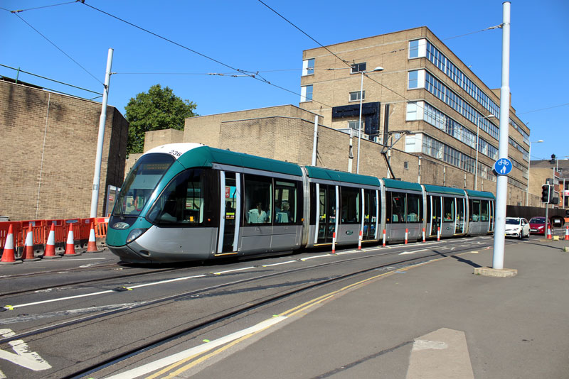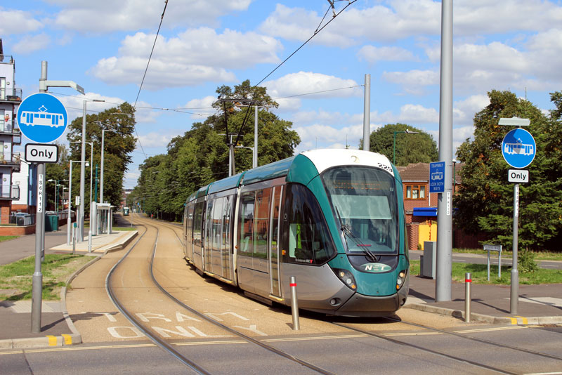 | In this collection we travel to Nottingham Express Transit for another set of photos. These photos were taken at the very end of August and start of September at which time rail replacement work meant that a split service was in operation; trams from Clifton South and Toton Lane only ran as far as The Forest with passengers wishing to travel to Hucknall and Phoenix Park having to either catch a replacement bus or walk to Wilkinson Street where services resumed. We feature scenes at either side of the closure showing the temporary arrangements in place at this time and we also feature further images at other locations on the network. |