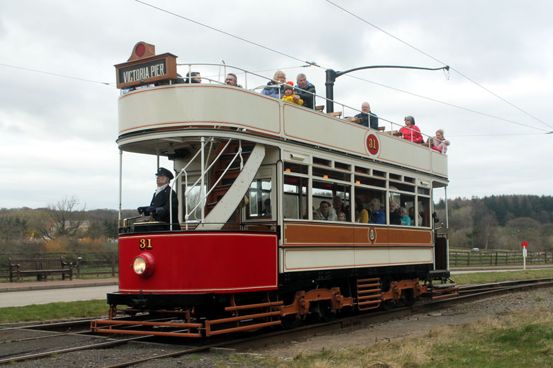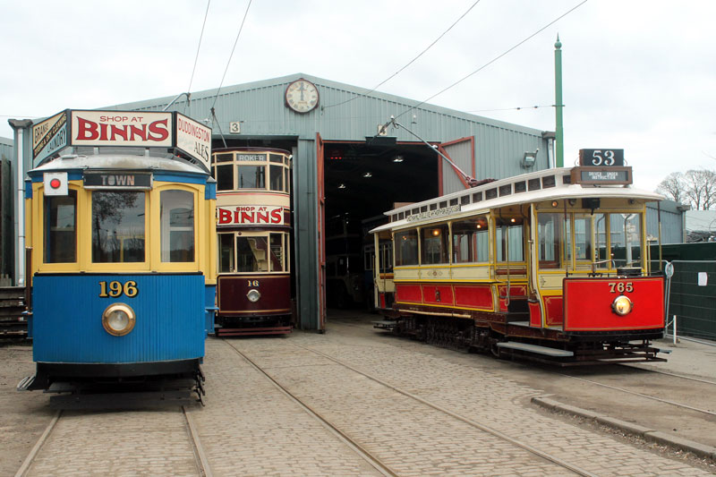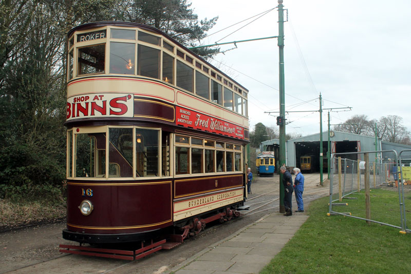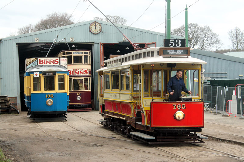 | On Tuesday 26th March a shunt of trams at Beamish meant that Coal Transporter Oporto C65 made a rare foray into the open to allow Manchester 765 to be repositioned in the depot. This bonus collection of photos shows not only C65 outside the depths of the depot - with it being towed by fellow Oporto car 196 but also some other shots of the shunt with 765 stabled outside briefly and we also see the service cars on this day - Blackpool 31 and Newcastle 114 - in action. |