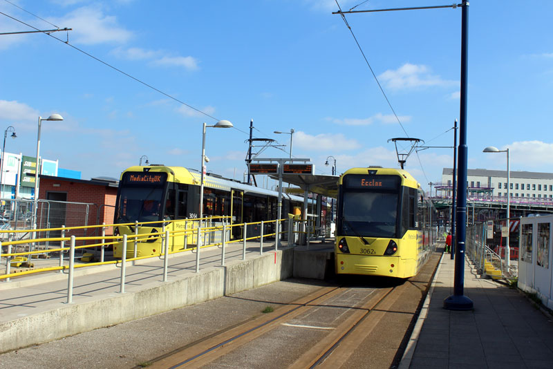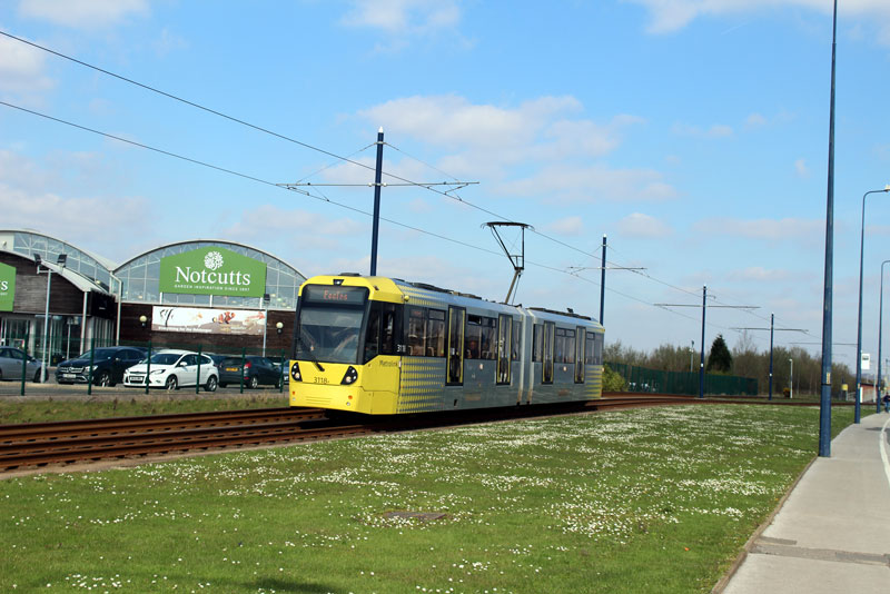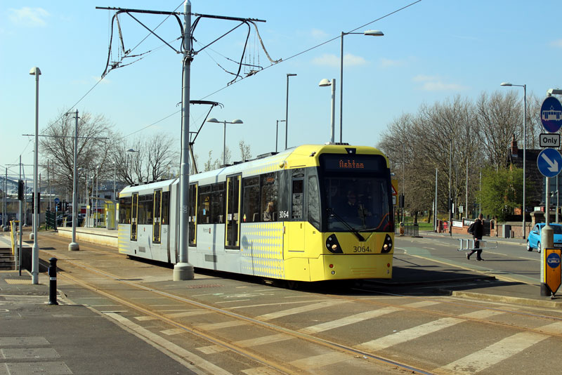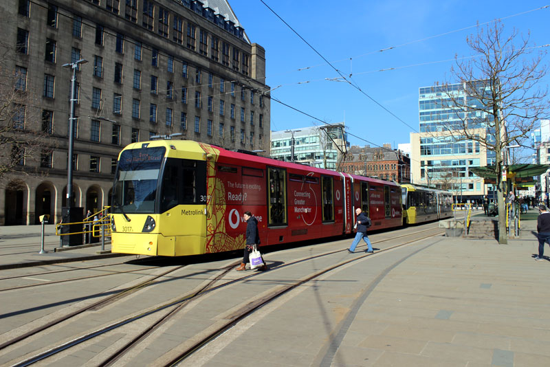 In this collection we head to Manchester Metrolink for a selection of photos taken at the end of March. Our first port of call is the Ashton-under-Lyne line now enjoying double the trams the entire length following the extension of the MediaCityUK-Ethihad Campus service earlier this year. After photos at several locations on that line we head into the city centre for a few images before its off to Sale Water Park on the Airport line and then Firswood (on the East Didsbury and Airport lines). We then end with more shots in Manchester City Centre. |