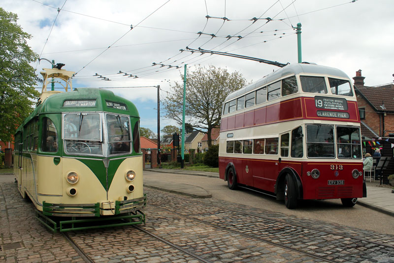 Over the weekend of 11th and 12th May the East Anglia Transport Museum in Carlton Colville went to the seaside with a 50s Seaside Celebration the theme of their latest special event. Whilst the main highlight was the launch back into service of Hastings trolleybus 34 after restoration and the visit of Happy Harold ex-Hastings trolleybus 3 (now running under diesel power) the trams didn't miss out! Keeping with the seaside theme the two trams running were Blackpool pair Marton VAMBAC 11 and Standard 159 and this gallery mainly concentrates on those two trams. We don't ignore the other vehicles in operation though with some views of the trolleybuses and also see those trams in the depot not needed for the event. |