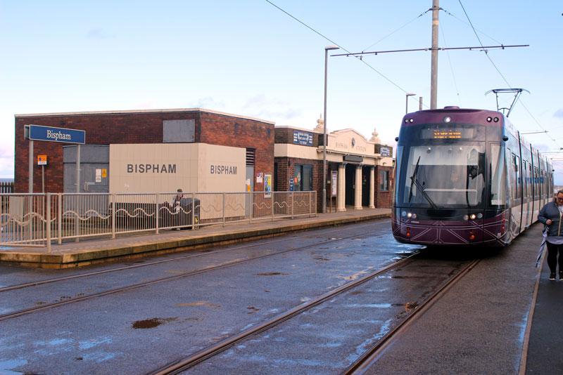 The Tramroad station building and substation at Bispham is now in use as a cafe (as well as providing some shelter for waiting passengers) and is seen on the left here as 018 passing southbound for Starr Gate.