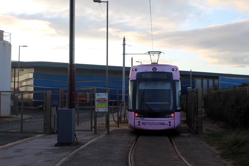 016 is caught here at the entrance to the tram depot at Starr Gate. It will shortly pull forward and head through the tram wash before shunting into the depot building.