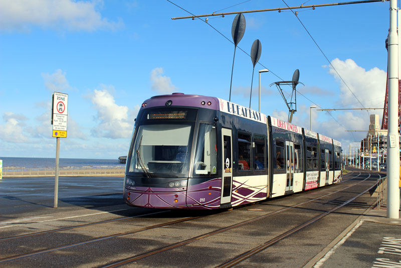 The effects of seven years daily service on Blackpool Prom can be seen in this view of 010 with the purple of its livery having faded over the years.