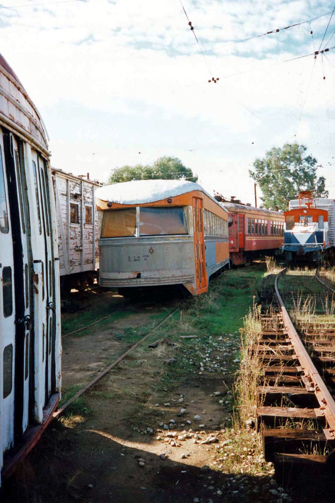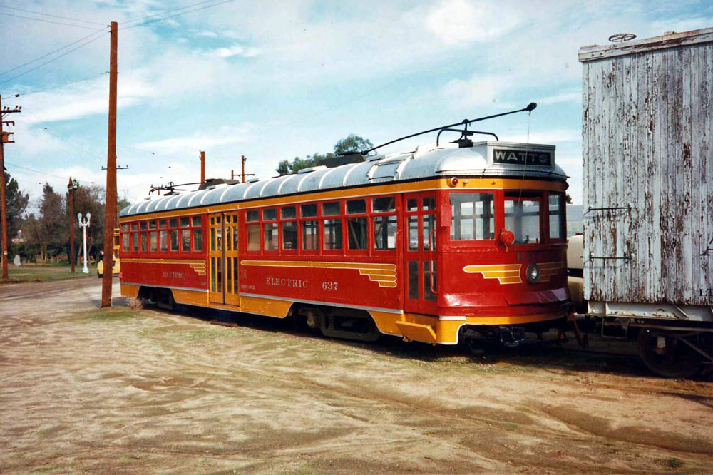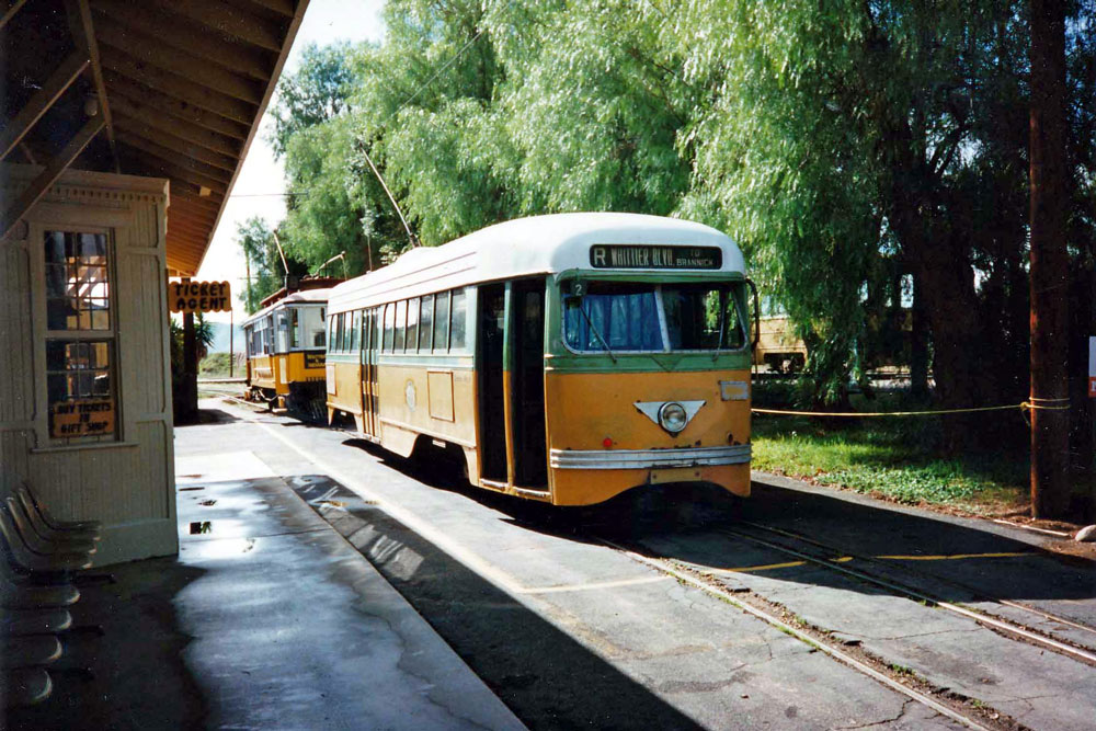 This collection again heads to the United States of America with photos taken on four separate visits to the museum now known as the Southern California Railway Museum (from 2019) but previously the Orange Empire Trolley Museum. It was founded in 1956 at Travel Town in Griffith Park, Los Angeles and in 1959 the Pinacate station near Perris (about 70 miles South East of Los Angeles) was acquired with around a mile of track which had belonged to the Atchinson, Topeka & Santa Fe Railway. By this time 11 trams were owned by the group and they were moved to Perris. In the 1970s a circular loop line was built around the car sheds and workshops starting at finishing at Pinacate station. The former ARSF mainline is now around 1.4 miles long having been extended towards the town of Perris. The loop is dual gauge and the mainline standard with both being electrified. The mainline is operated by former Pacific Electric cars and by steam and diesel trains with the loop line mainly served by former Los Angeles Transit cars although Pacific Electric cars can also be used.