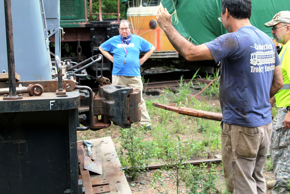 The towbar from Boston Elevated Railway 5645 is then attached to Hartford Electric 1.
