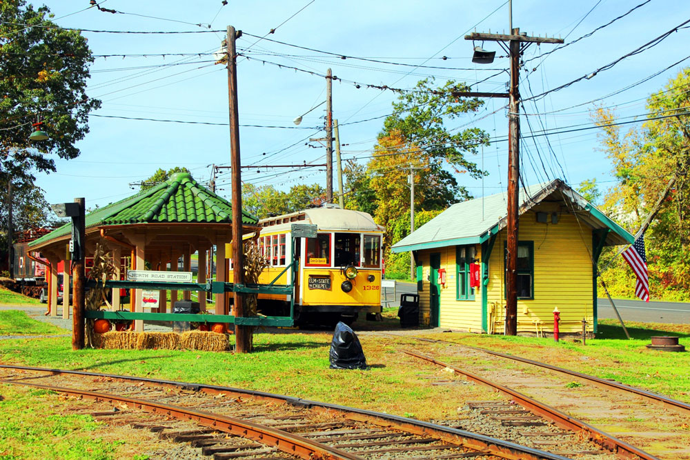 Another view of the North Road station area with Connecticut Company 1326 standing at the ‘Isle of Safety’. 1326 has been part of the collection since 1948 when it was withdrawn by the Connecticut Company having been in service since 1910.