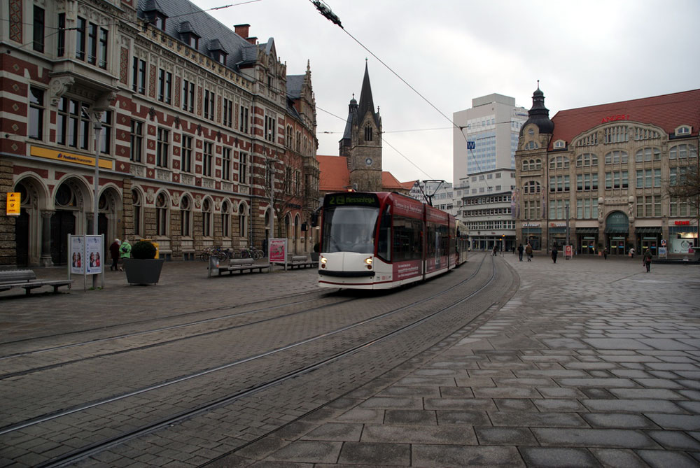 In this "Around the World in Trams Special" we head to the German city of Erfurt for a look at the metre gauge Stadtbahn. Erfurt is the capital of Thuringia in central Germany and its Stadtbahn system has a total route length of 28.1 miles (45.2km). The first horse tram ran in Erfurt on 13th May 1883 with electric operation starting from 20th August 1894. The system became a true Stadtbahn from 1997 with extensions also starting to be built from that time, the only lines which are don't run on their own right of way are those within the city centre.