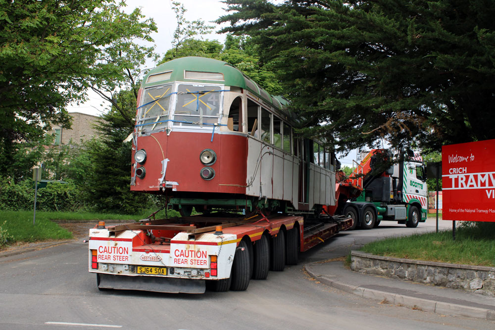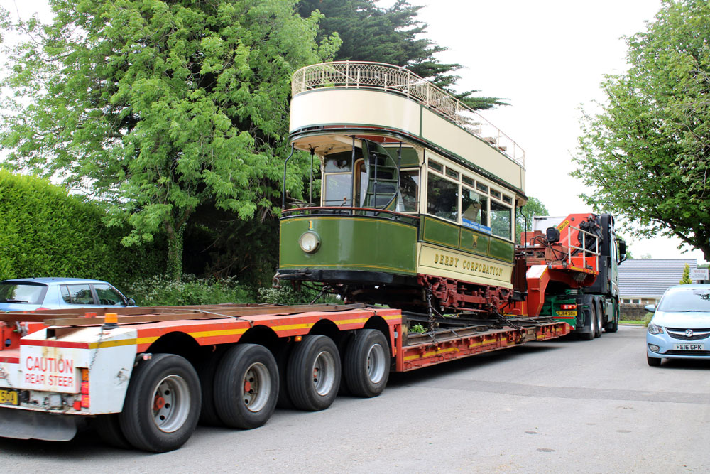| The first half of June saw more changes at the Crich Tramway Village with one tram returning to the museum from the Clay Cross store as another headed in the opposire direction. This collection starts on Sunday 6th June when there was a little bit of shunting at Crich as well as preparations for the impending tram moves. We then move on to moving day - Friday 11th June - with firstly Blackpool 298 being collected from Clay Cross. We see it both at the store and at Crich as it is unloaded and then moved into the depots. Attention is then turned to Derby 1 which is loaded at Crich before being moved for storage at Clay Cross. |