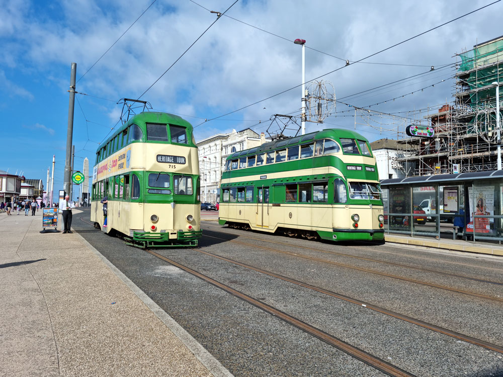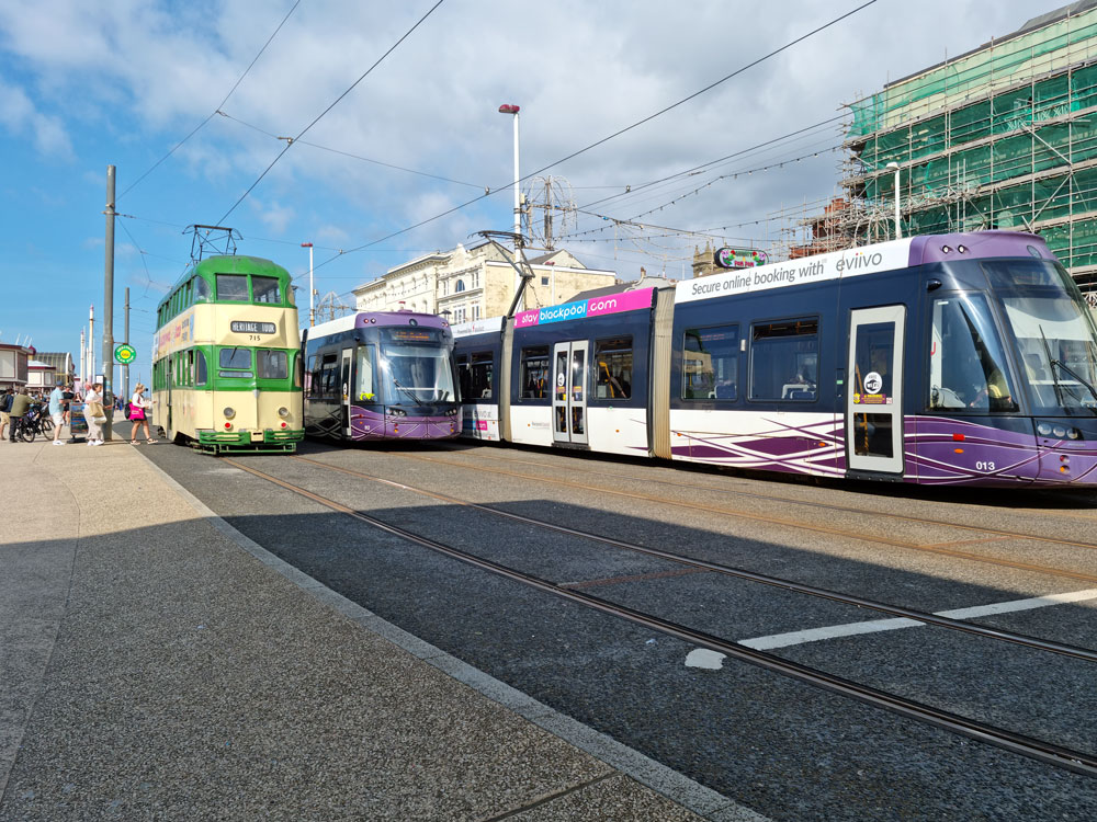 Blackpool is the location for this set of photos as we feature both the modern and the traditional trams operating on the tramway on two dates in mid-late August. We start on a wet 21st August with three heritage trams seen in action - Standard 147, Brush 631 and Balloon 717. Alongside those trams we see several of the Flexity2 trams operating the core service which at the time was every 15 minutes Starr Gate-Fleetwood Ferry with trams every 7/8 minutes heading from Starr Gate to Little Bispham. Before we end that day's photos we take a look at the overhead wiring in Talbot Square, some mini tram benches and signage along Talbot Road. After that we move forward to 24th August when the weather was finer with Balloon Cars 715 and 717 in heritage action. There are also more Flexity2 shots and a trip to Rigby Road Depot to see what was going on up there. |